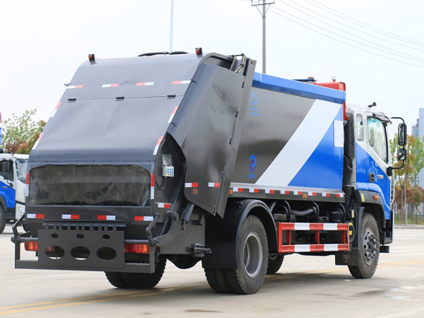 壓縮式垃圾車工作裝置:不同用戶可根據(jù)不同的垃圾搜集方式,選裝不同的翻桶(斗)機(jī)構(gòu):翻標(biāo)準(zhǔn)垃圾鐵桶ZBT59003-88(300L)、塑料垃圾桶(240L)、塑料垃圾桶(660L)、隨車小垃圾斗(800L)、密封遮蓋式垃圾斗(1400L)、擺臂垃圾斗(3000L)。
